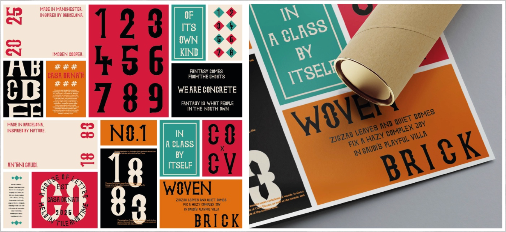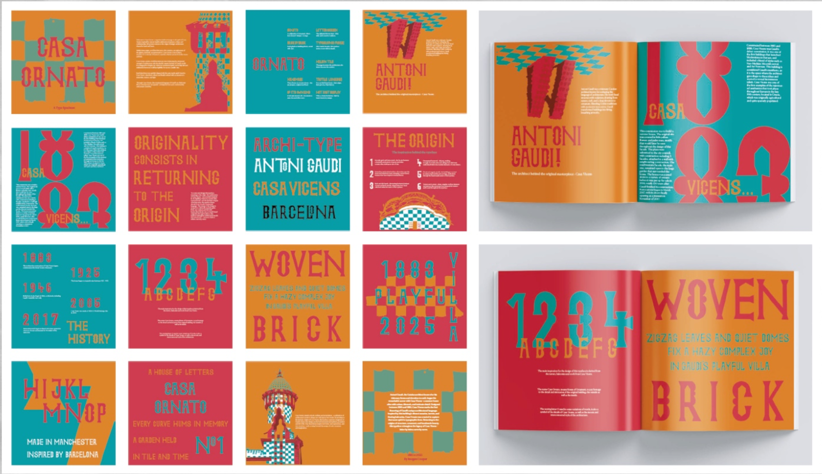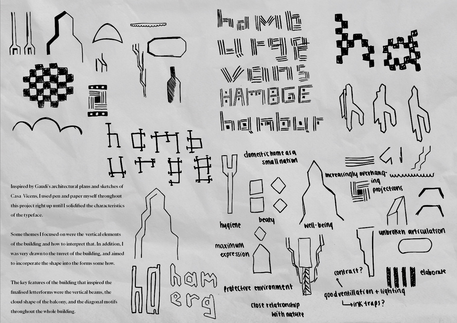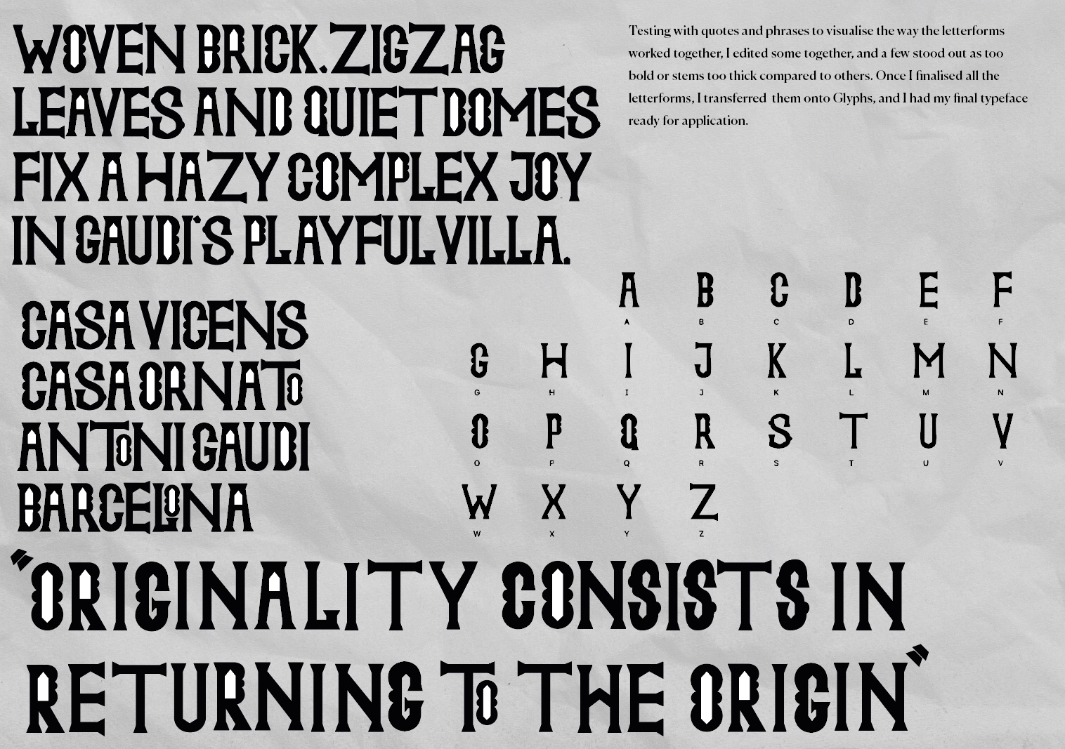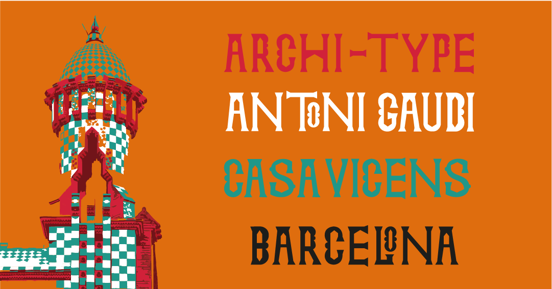 This project explores the connection between architecture and typography through a display typeface inspired by Antoni Gaudí’s first building, Casa Vicens.