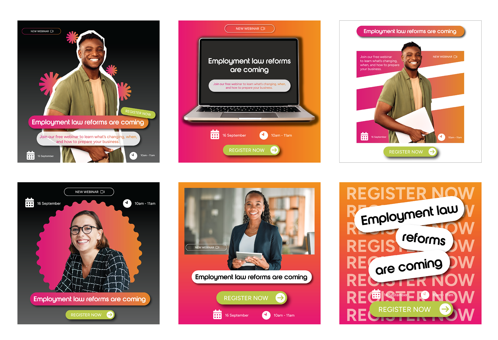 This brief allowed me to explore different ways to design a social post with a clear and enticing call to action, utilising limited post copy and colour.